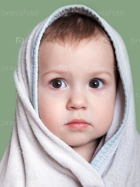Чистый ребенок после купания, завернутый в полотенце