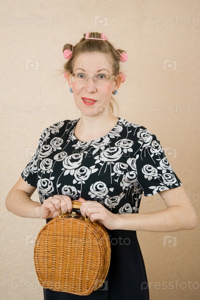 Домохозяйка с плетеной корзинкой