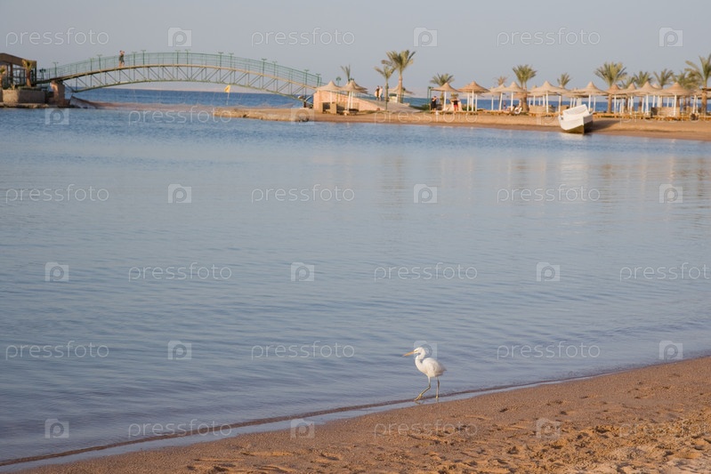 Малая белая цапля на берегу Красного моря