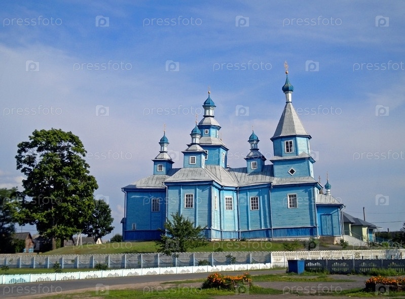 Деревянная Свято-Николаевская церковь с наклоненными куполами