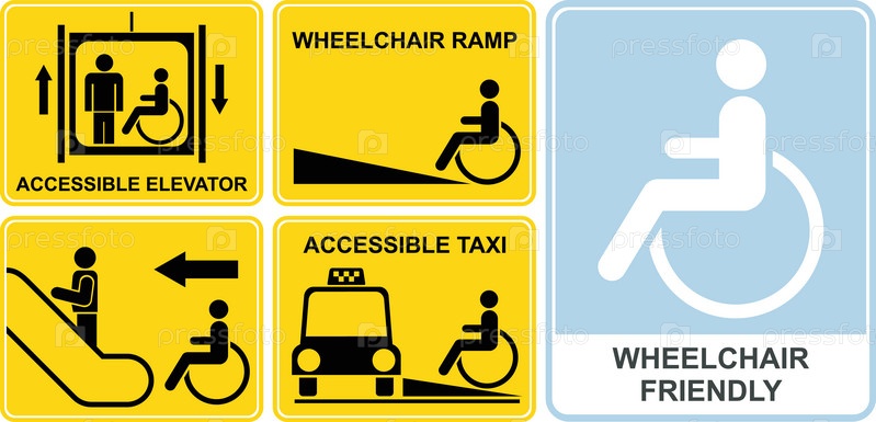 Знаки с изображением инвалидного кресла и дорожной инфраструктуры для инвалидов