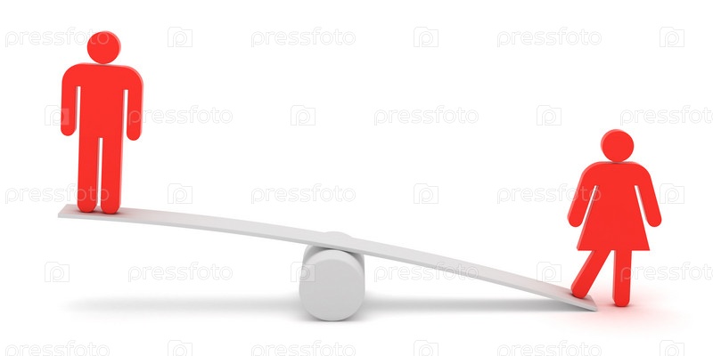 Красные фигуры мужчины и женщины на разных сторонах балансирующих качелей
