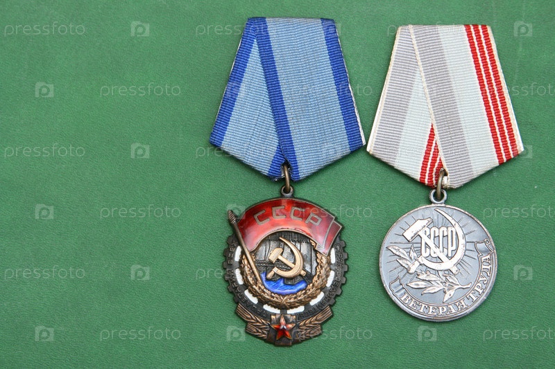 Медали на зеленом фоне