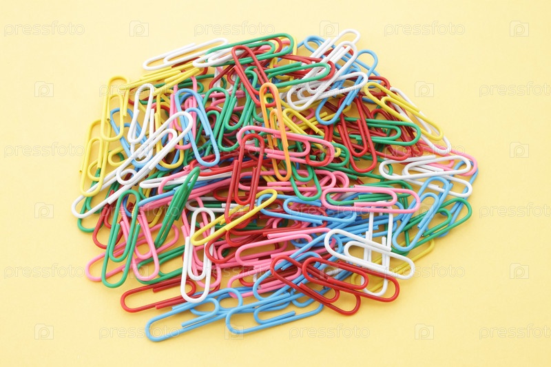 Бумажные клипы на желтом фоне
