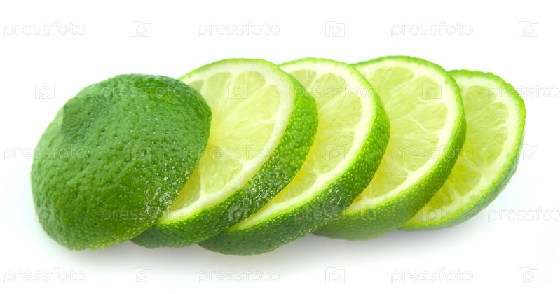 Нарезанный лайм крупным планом, на белом фоне