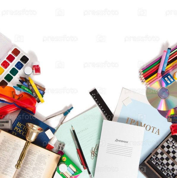 Школьные принадлежности на белом фоне