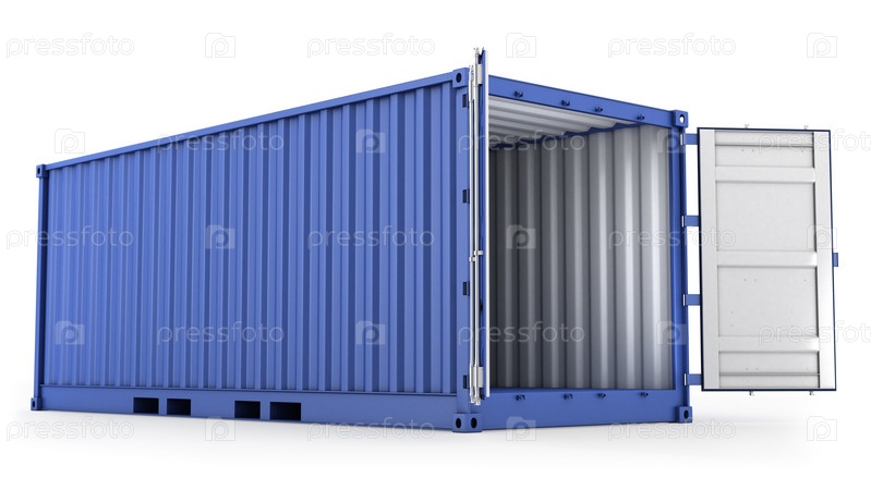 Синий грузовой контейнер на белом фоне