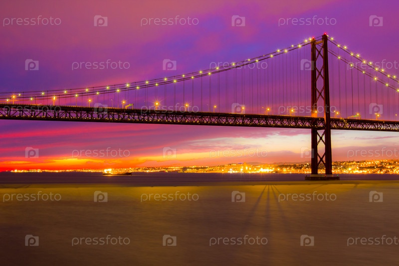 Подвесной мост через реку Тежу ночью, Лиссабон