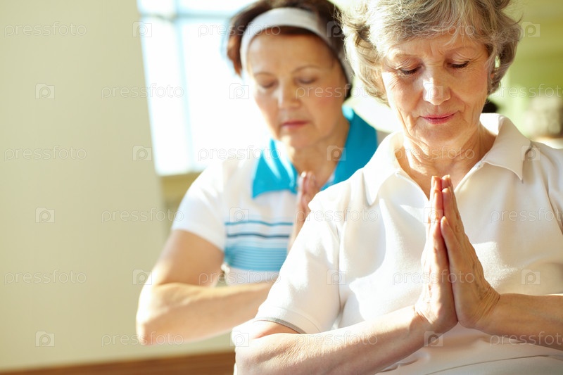 Пожилые женщины практикуют йогу