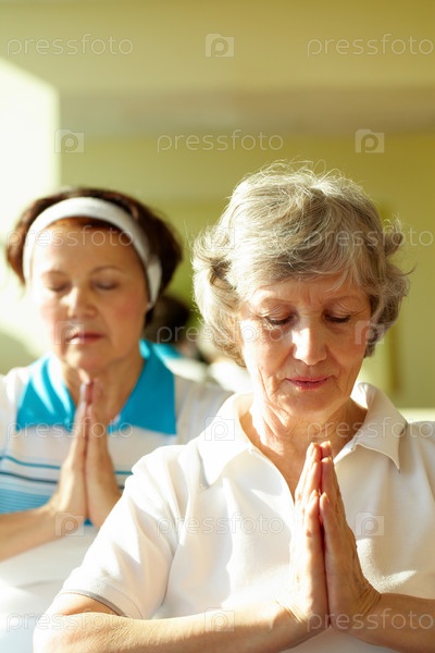 Пожилые женщины практикуют йогу