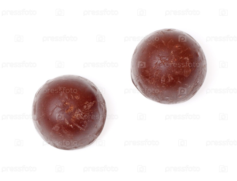 Две шоколадные конфеты на белом фоне