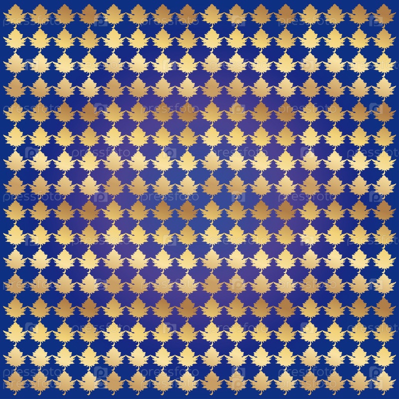 Золотые кленовые листья на синем фоне