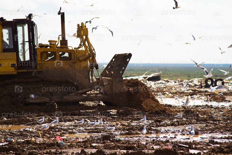 Бульдозер на свалке мусора