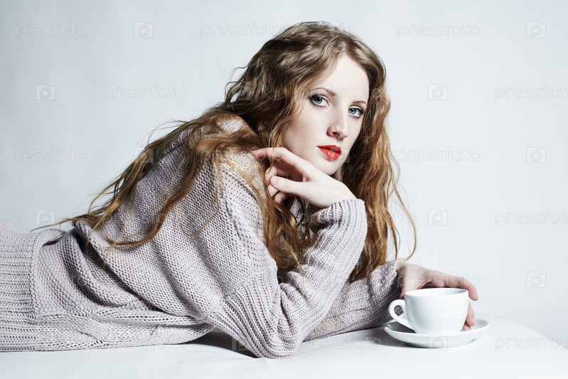 Портрет молодой красивой женщины с чашкой кофе