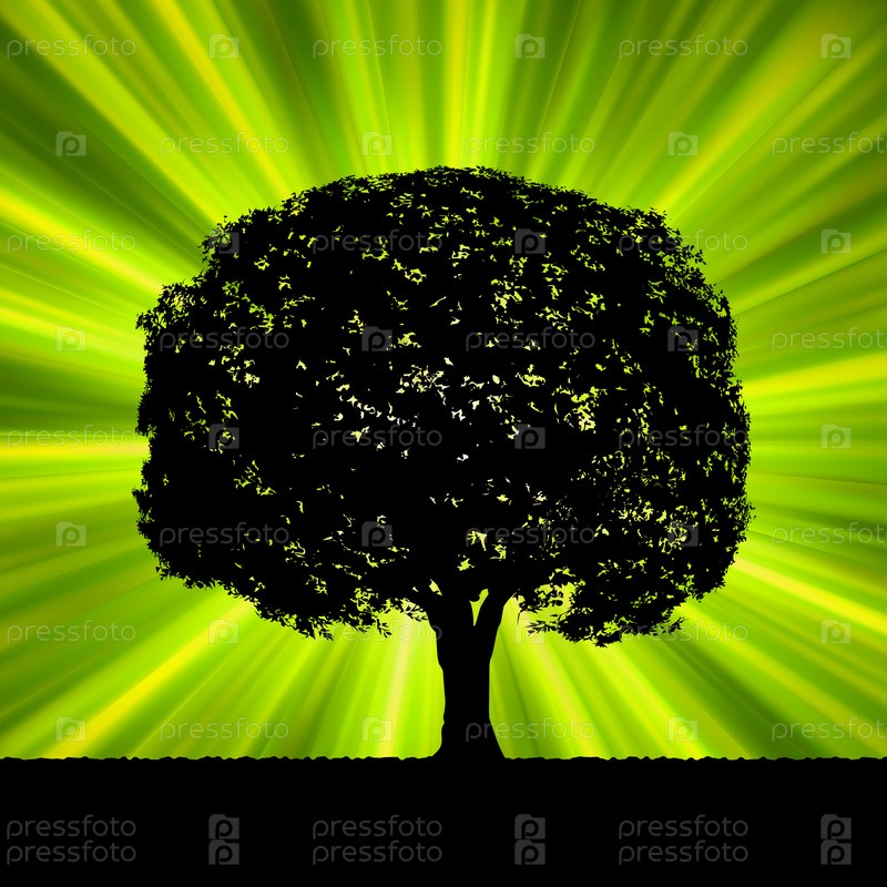Силуэт дерева на ярко-зеленом фоне