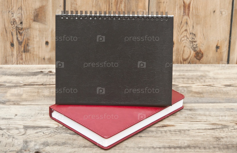 Настольный календарь и красный кожаный блокнот на деревянном столе
