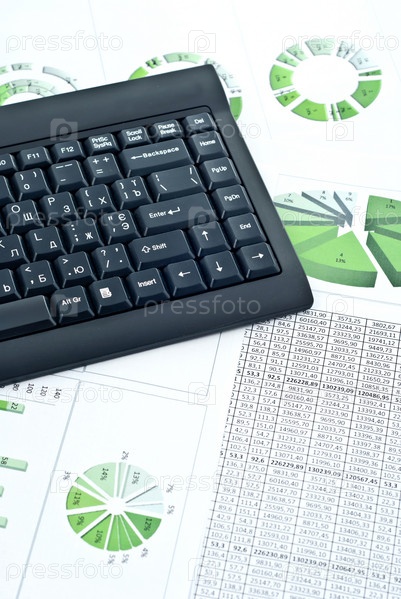 Черная компьютерная клавиатура на биржевой диаграмме