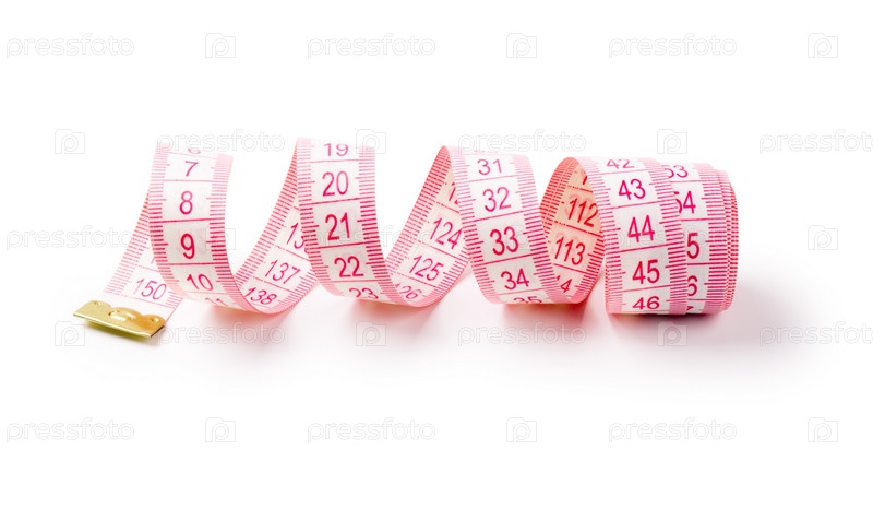 Измерительная лента, свернутая спиралью, изолирована на белом