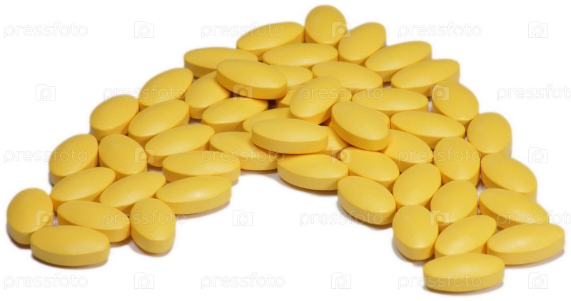 Желтые витамины на белом фоне