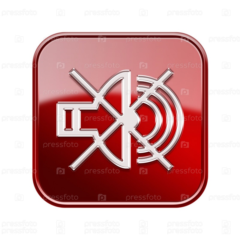 Красная кнопка с выключенным динамиком, изолированная на белом фоне