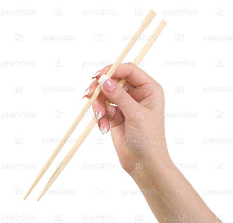Женская рука, держащая китайские палочки