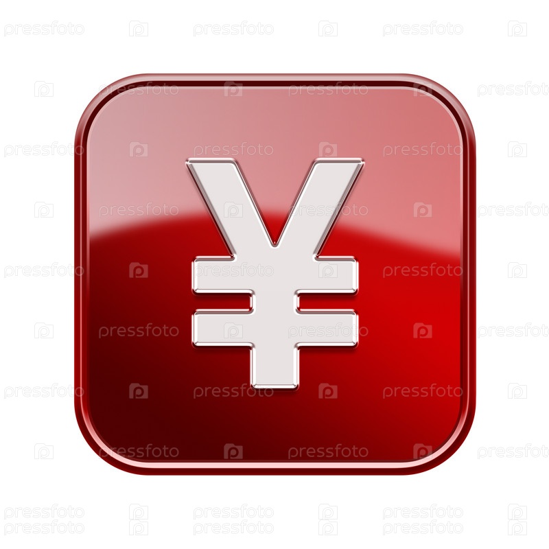 Глянцевый красный знак йены, изолированный на белом фоне