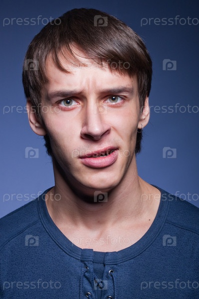 Эмоциональный человек с выражением неуверенности в себе на лице