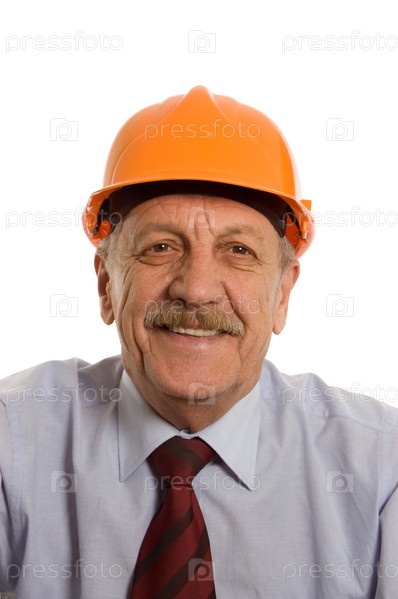 Инженер в каске на белом фоне