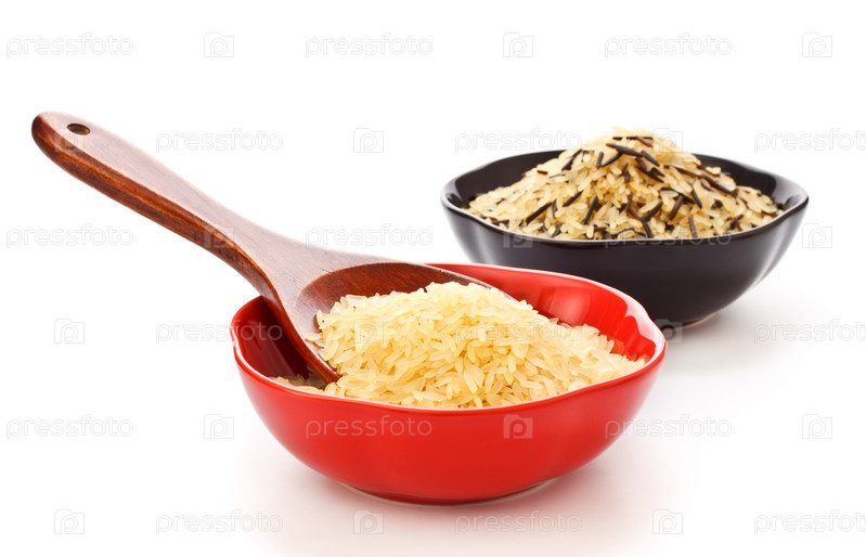 Две миски с рисом на белом фоне