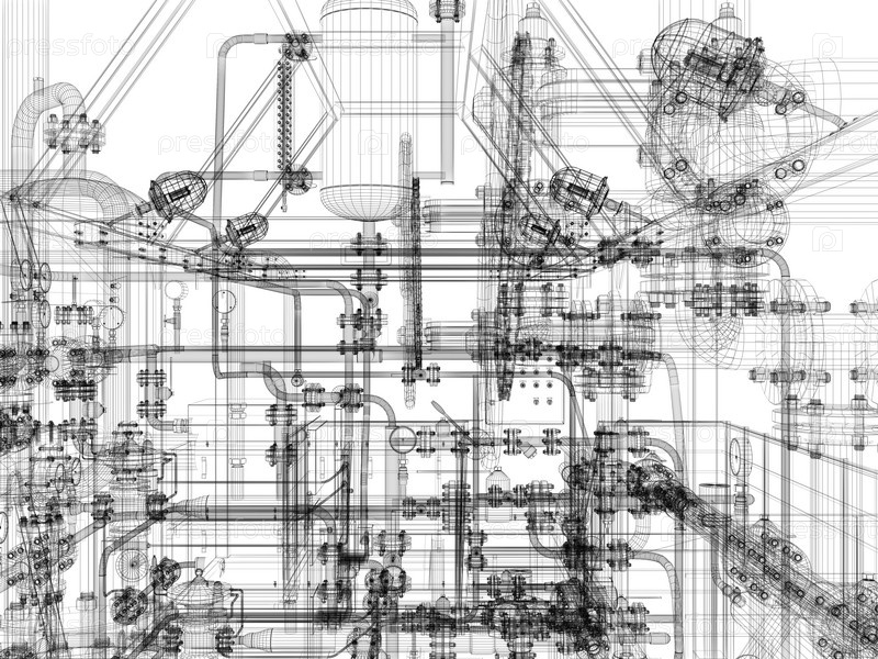 Промышленное оборудование. Проволочный каркас, визуализация