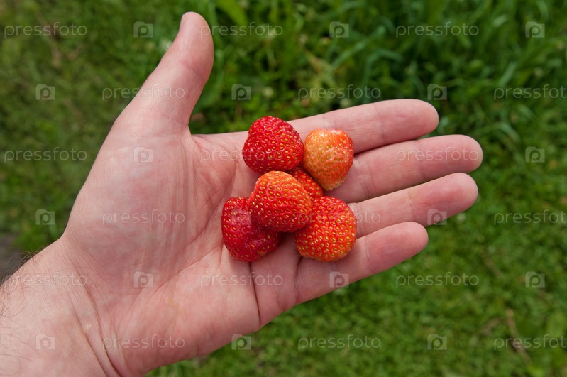 Ягоды клубники на ладони