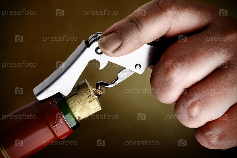 Бутылку вина открывают штопором