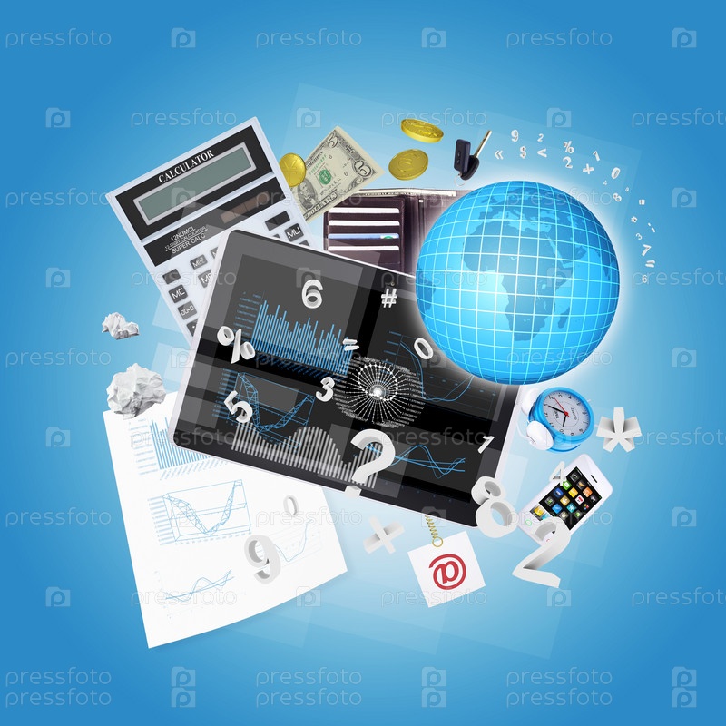 Планшетный компьютер и канцелярские товары