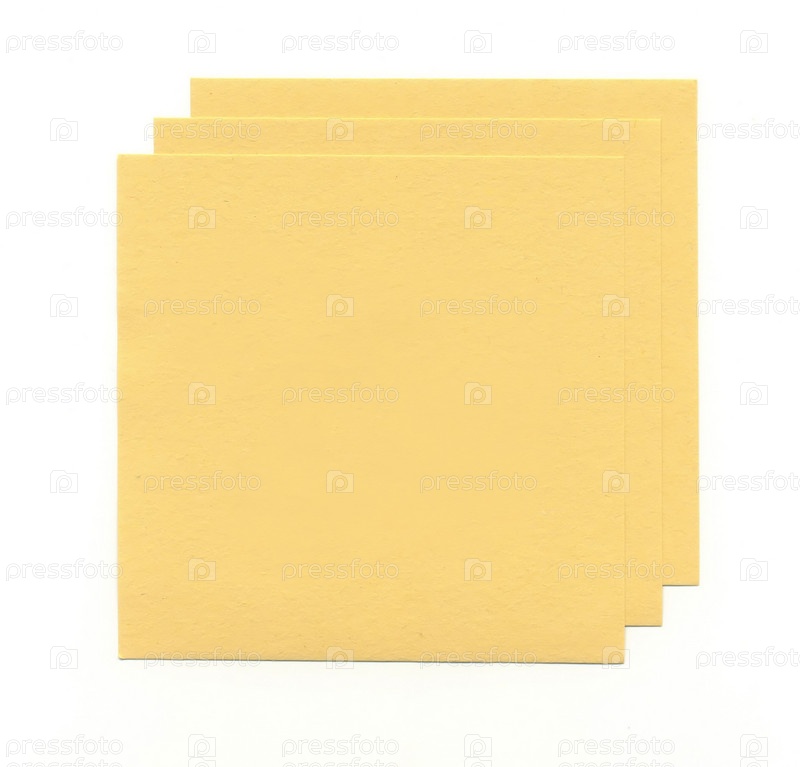 Желтые листы бумаги для записок, изолированные на белом фоне