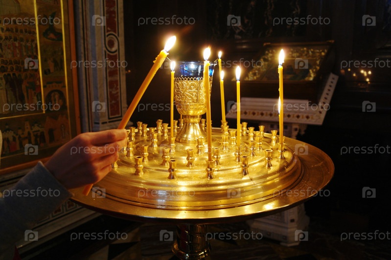 Девушка ставит свечку в православном храме. Храм Христа Спасителя, Москва