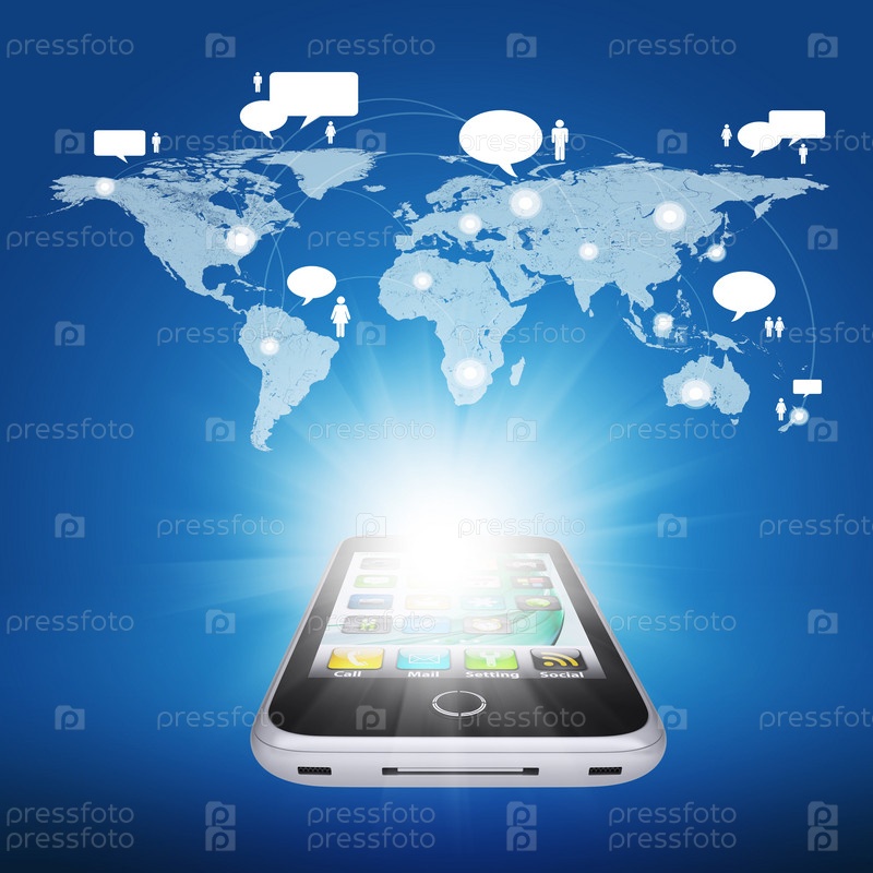 Смартфон и карта мира с контактами