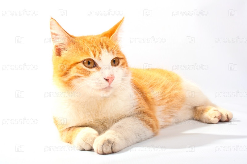 Рыжий кот, изолированный на белом фоне