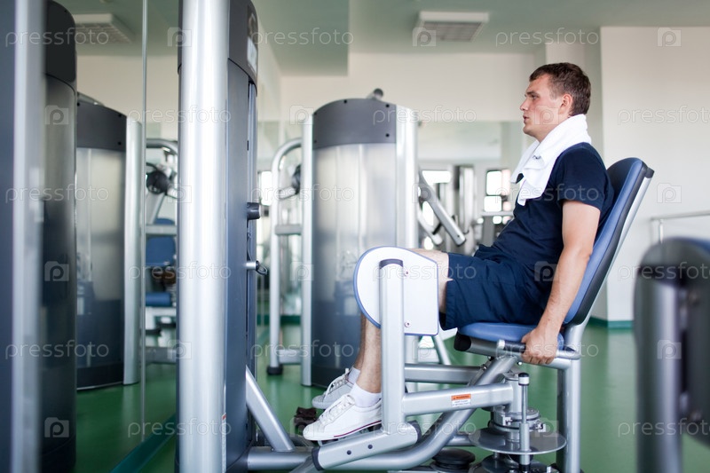 Молодой человек в спортивной одежде в тренажерном зале