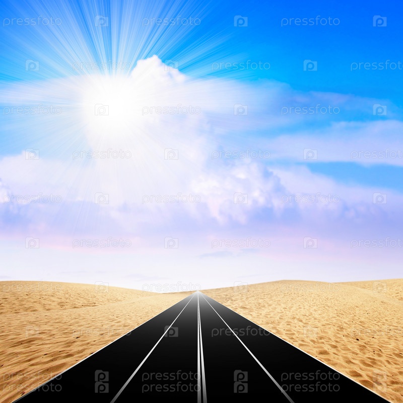Пустая трасса в пустыне и облачное небо