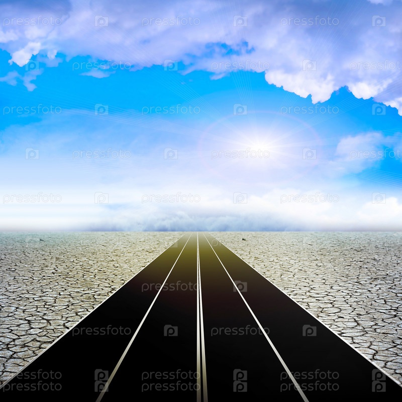 Пустая трасса в пустыне и облачное небо