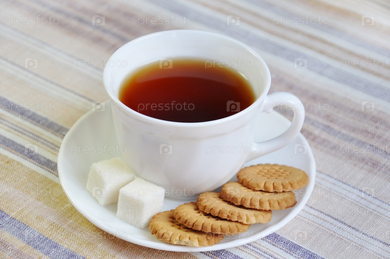 Чай с печеньем и рафинированным сахаром