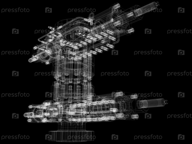 Промышленное оборудование. Проволочный каркас, визуализация