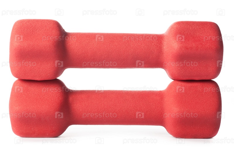 Две красных гантели на белом фоне