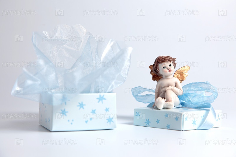 Фигурка ангела на коробочке с подарком