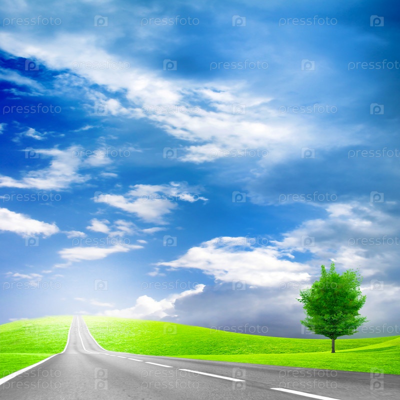 Дерево, стоящее у дороги на фоне неба