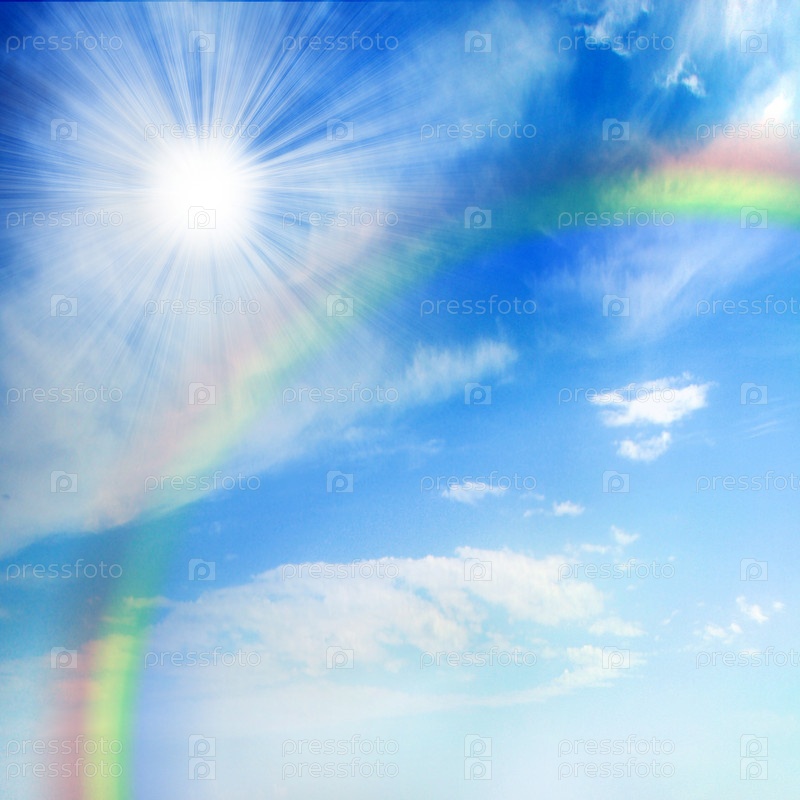 Солнечное небо с радугой