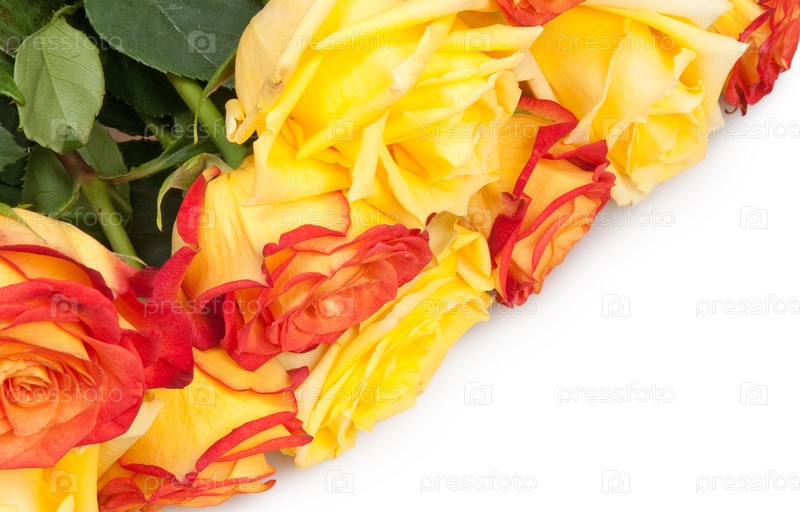 Букет из красных и желтых роз на белом фоне