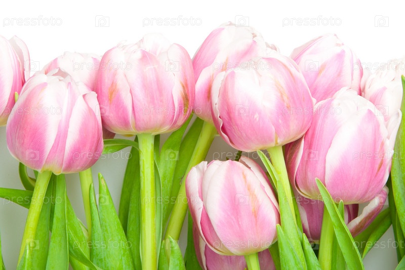 Розовые тюльпаны на белом фоне