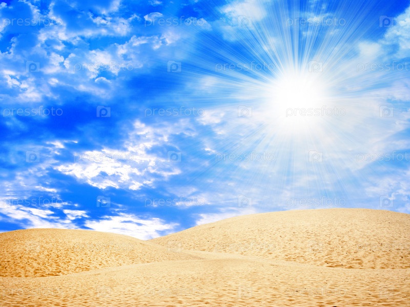 Пустынный пейзаж с облачным небом