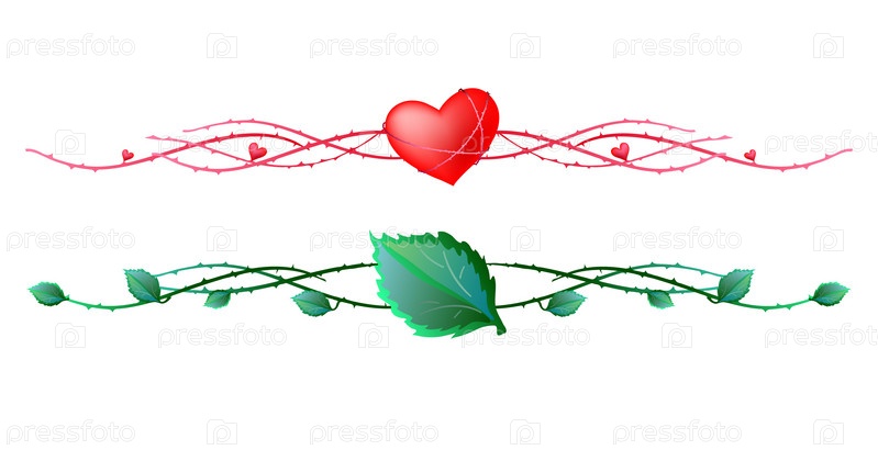 Красный узор с сердцем и зеленый узор с листьями на белом фоне